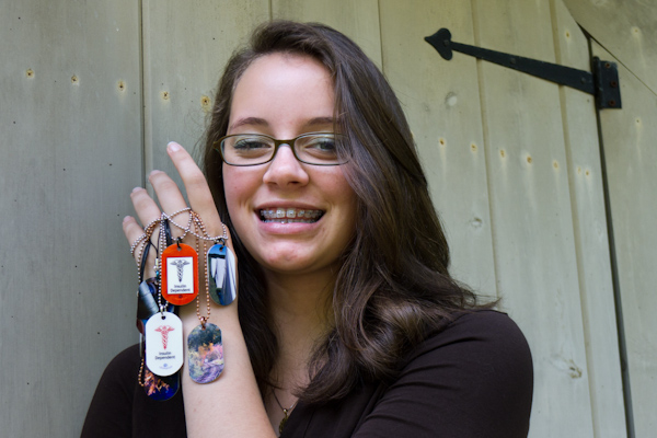 For some time I had been looking for a way to get my photographs off the hard drive and out into the world. When my daughter was diagnosed with Type 1 Diabetes at ten years old, I could not have imagined that we would end up here, with a healthy, confident young woman eager to improve the lives of people in difficult circumstances, and also the perfect means to solve my photos’ confinement woes. It seems people who are unwilling to wear traditional medical alert jewelry because it is too ‘medical’, are attracted to the cDogs. Playful or beautiful, hobby or logo, show your personal style on your cDog dog tag!