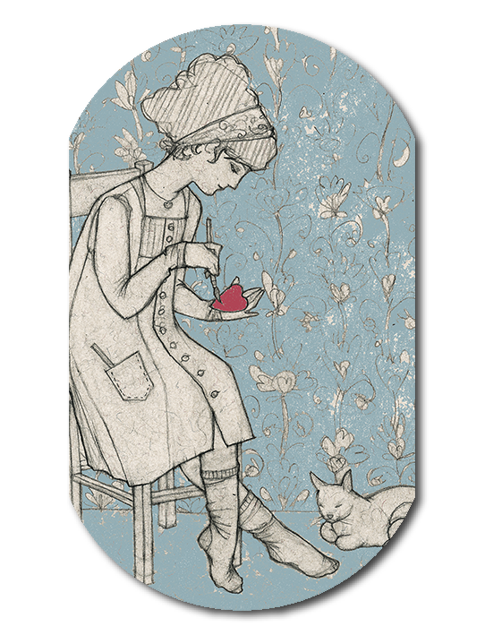 Artist Linda Wingerter has graciously loaned me this sweet illustration to use for this printer fundraiser project, so that makes it a gift from her to me, and from me to you! This very special set of 4 magnets, each just over 2″ square, is the perfect addition to your kitchen, office, or other favourite space, and not available elsewhere.